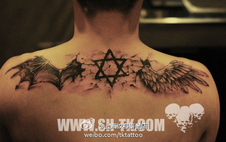 男生后背超帅的一半天使一半恶魔翅膀纹身图案