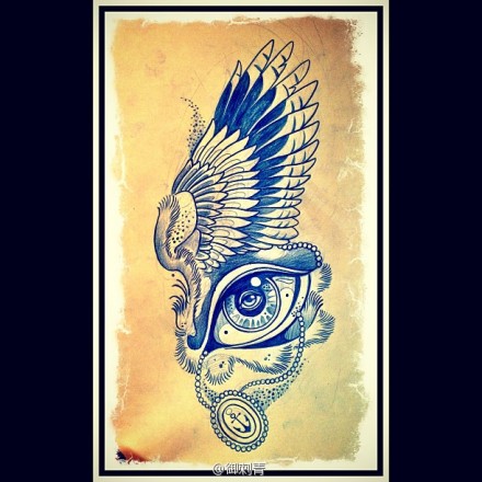 经典潮流的翅膀与眼睛纹身图案