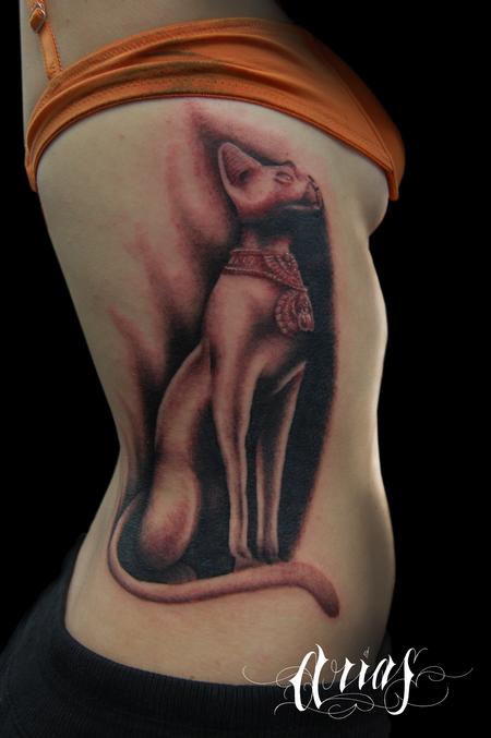 侧腰诡异猫纹身图案图片大全