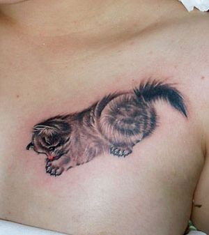 美女胸部可爱的小猫咪纹身图案
