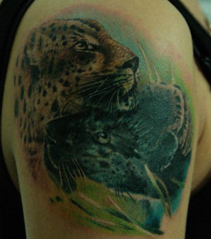 手臂好看的彩色豹子纹身图案