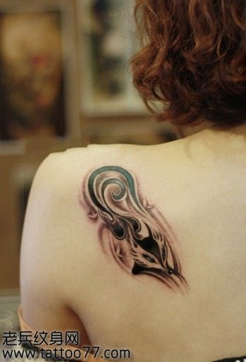 女生肩背小狐狸纹身图案 女生肩背小狐狸纹身图案