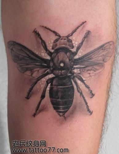 一款黑白小蜜蜂纹身图案 一款黑白小蜜蜂纹身图案