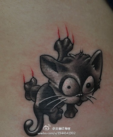 女孩子背部可爱的猫咪纹身图案
