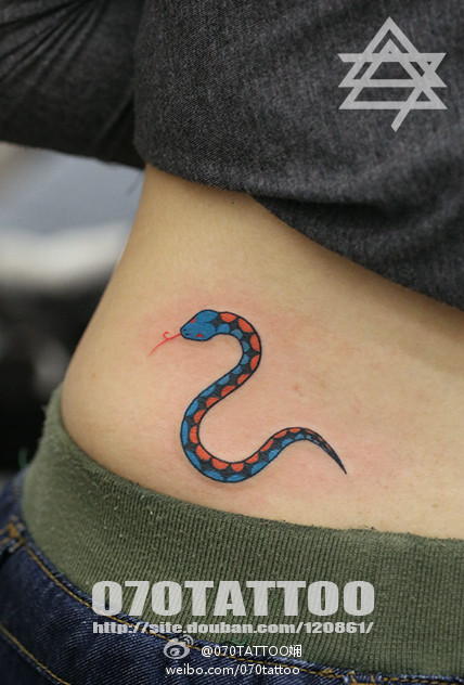 女孩子腰部一款彩色小蛇纹身图案
