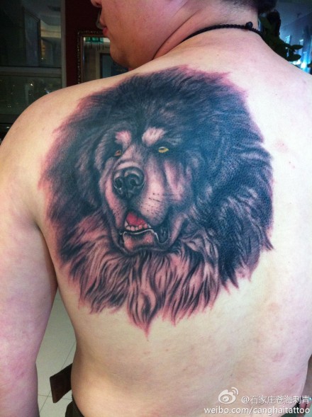 男人肩背超酷的藏獒纹身图案