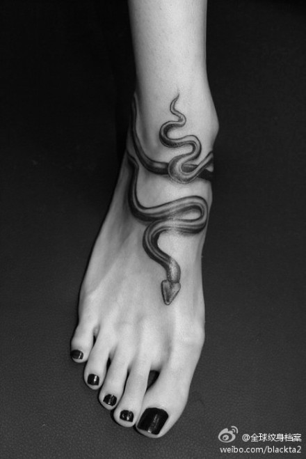 女生脚部好看的蛇纹身图案