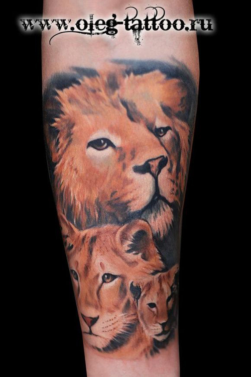 手臂帅气呆呆的三只狮头纹身图案