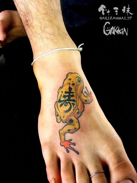 男生脚背一款经典的彩色蛤蟆纹身图案