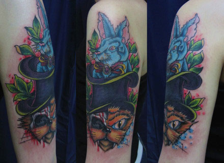 手臂邪恶的猫咪与兔子纹身图案