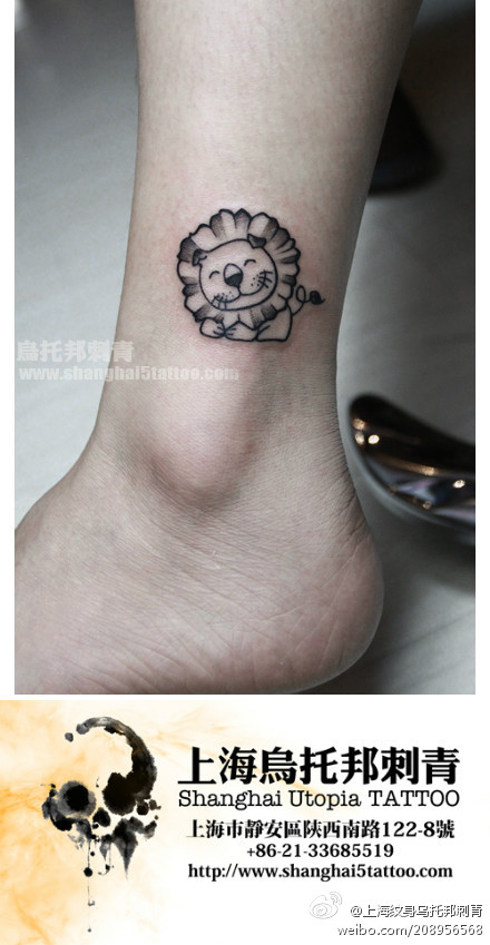 脚踝处可爱的小狮子纹身图案