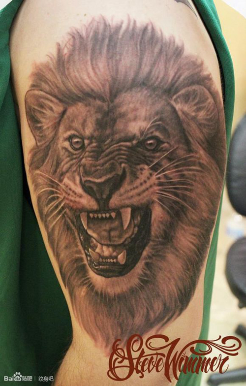 手臂一款凶悍的狮头纹身图案