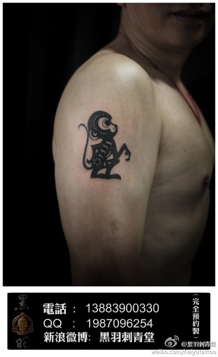 手臂一款剪纸图腾猴纹身图案