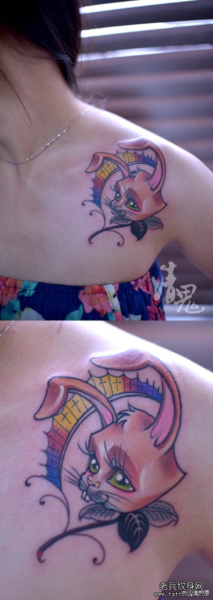 女生肩膀处可爱很萌的兔子纹身图案