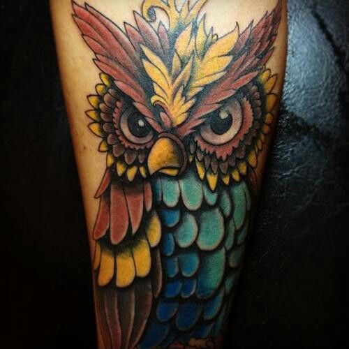 推荐一款小臂猫头鹰纹身图案