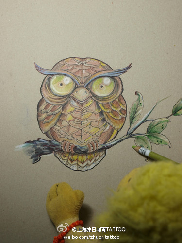 一款比较萌可爱的猫头鹰纹身手稿