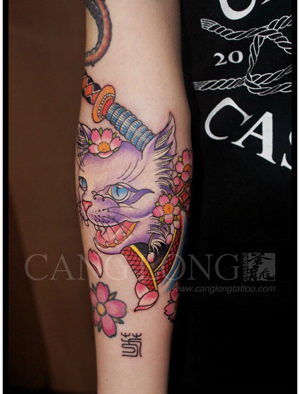 手臂漂亮时尚的猫咪纹身图案