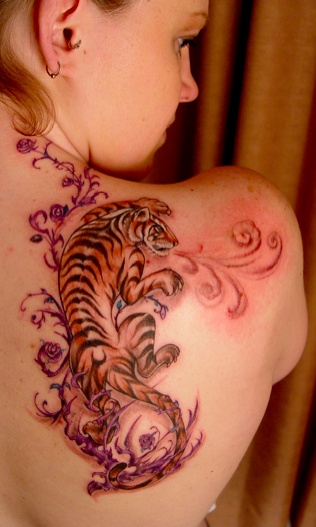 分享一款肩胛骨老虎纹身图案