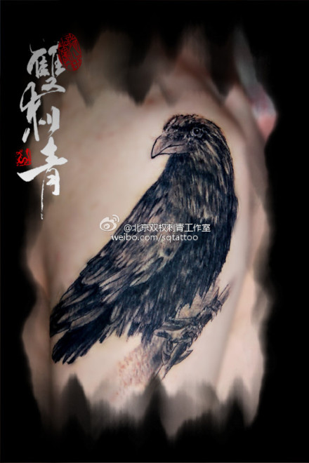 男生手臂时尚超酷的黑灰乌鸦纹身图案