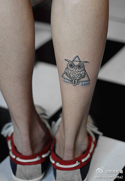 腿部可爱小巧的猫头鹰纹身图案