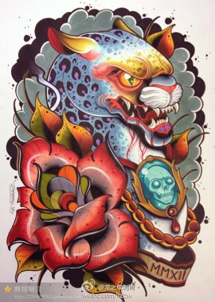超帅经典的一款豹子纹身手稿