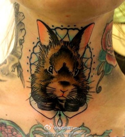 男生脖子处眼神很酷的动物纹身图案
