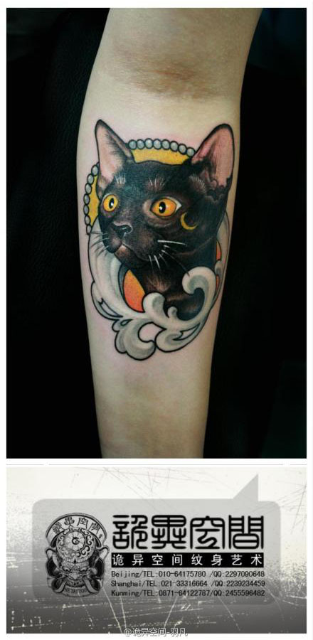 腿部一款潮流流行的猫咪纹身图案
