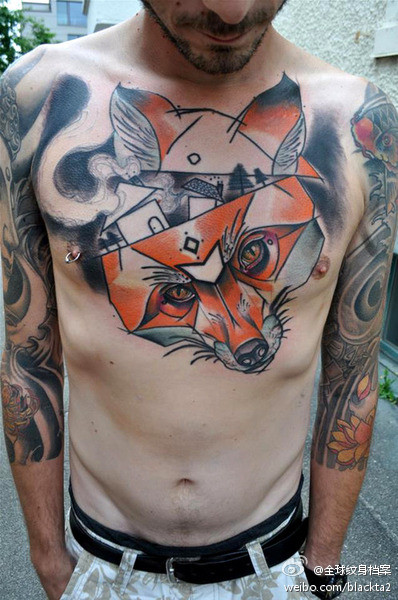 男生前胸超帅时尚的狐狸纹身图案
