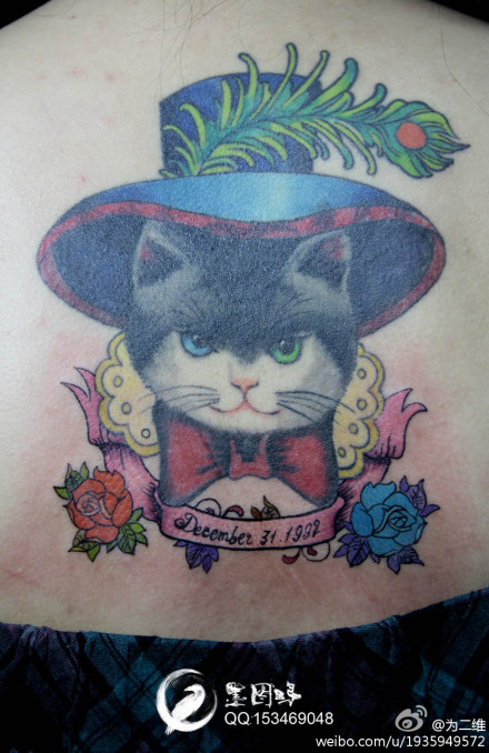 女生后背可爱的猫咪纹身图案