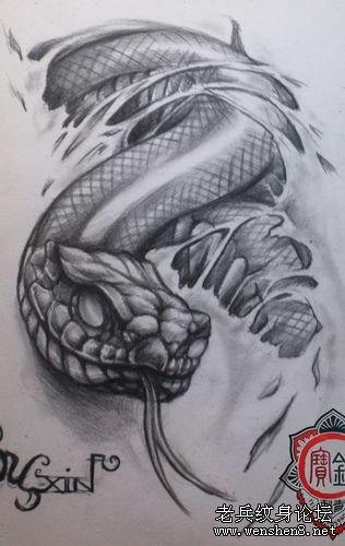 撕皮蛇纹身图案大全