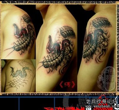 一款经典帅气的手臂蜈蚣纹身图案纹身图片