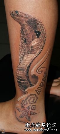 一款欧美3D腿部蛇纹身图案纹身图片