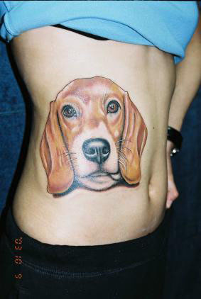 美女侧腰狗狗纹身图案图片