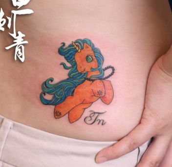 女孩子腰部卡通版独角兽纹身图案