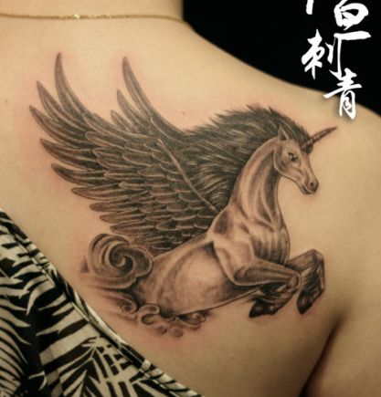 女孩子肩部帅气的独角兽纹身图案