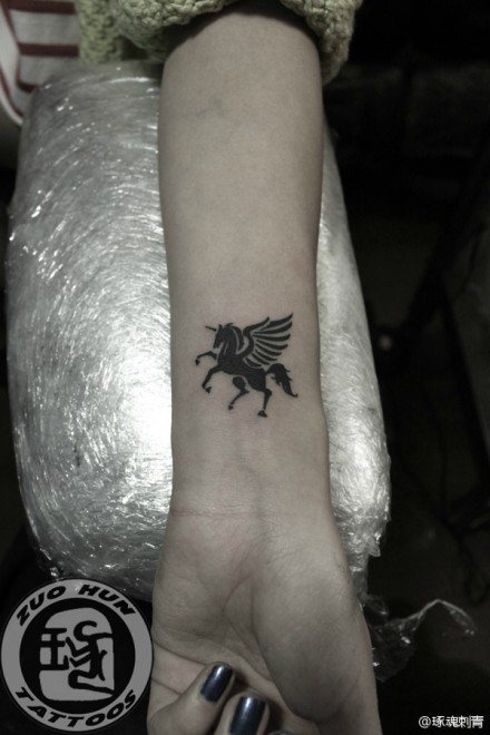 女生手腕小巧时尚的图腾独角兽纹身图案