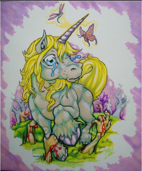 武汉老兵专业纹身店:惊恐的彩色独角兽纹身图片(tattoo)