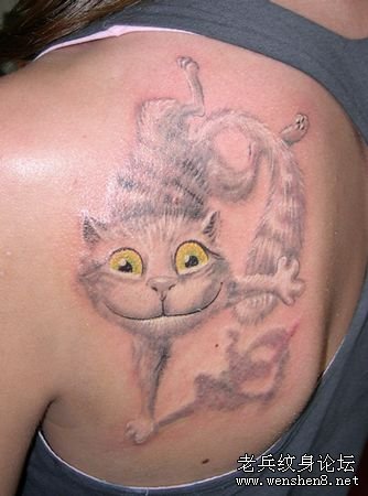 肩部彩色3D卡通猫咪纹身图案大全