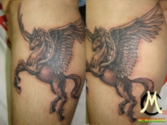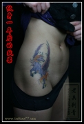 一款腰部彩色独角兽翅膀纹身图案纹身图片