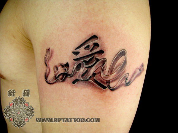 专业纹身店:大臂烙印文字字母纹身图案图片