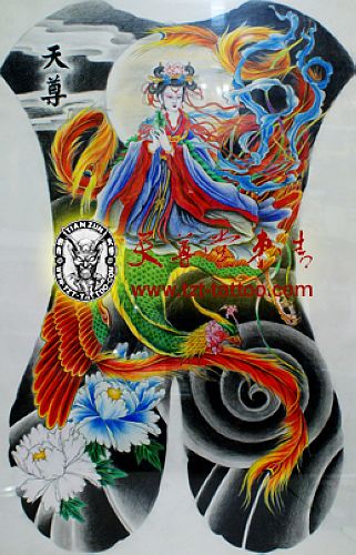 武汉纹身店:满背仙女凤凰牡丹纹身图案图片