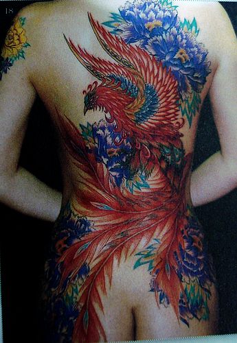 武汉纹身店:满背仙女凤凰牡丹纹身图案图片