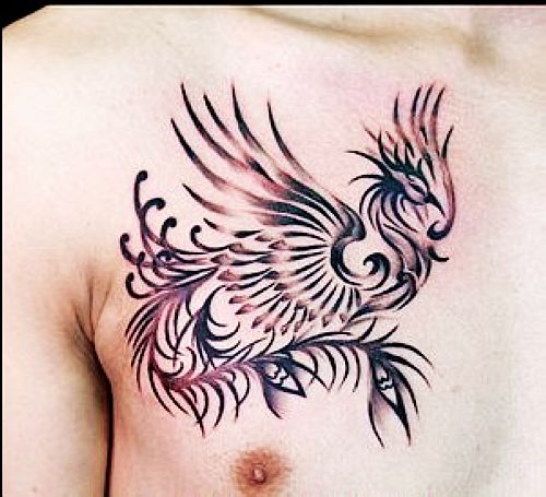 湖北武汉纹身店:胸口图腾凤凰文身图案图片