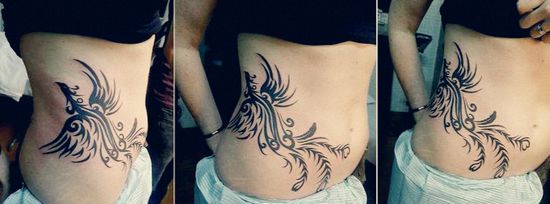 女生腰部潮流时尚的图腾凤凰纹身图案