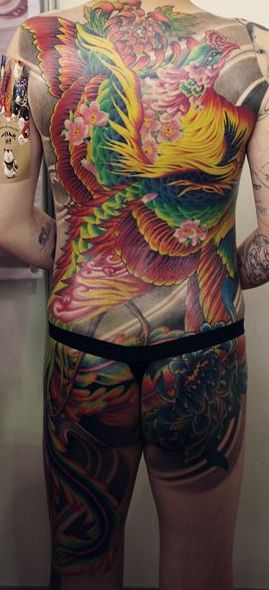 精美帅气的满背彩色凤凰纹身图案