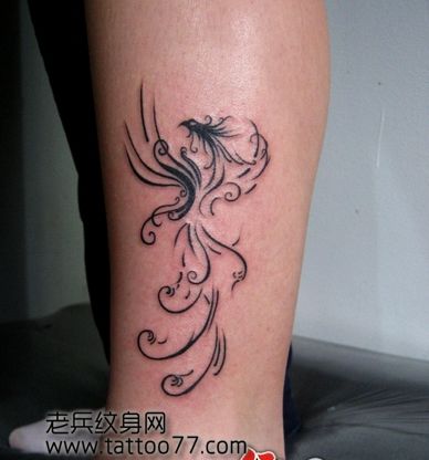 腿部一款图腾凤凰纹身图案