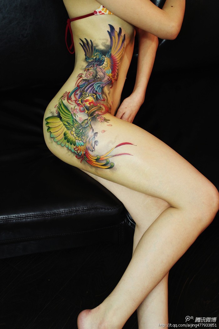 让人喷血的彩色凤凰纹身图案的女人图片写真