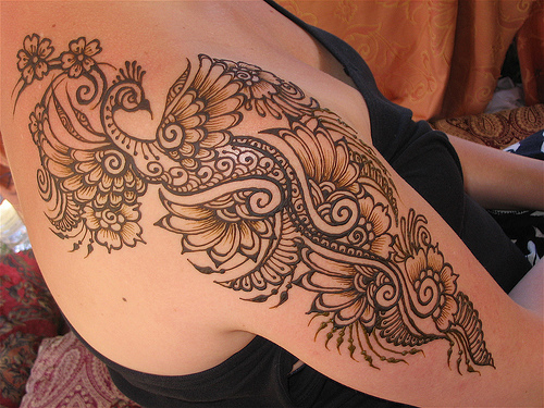 女生肩膀处潮流经典图腾凤凰纹身图案