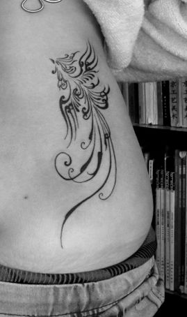一款经典时尚腰部图腾凤凰纹身图案纹身图片