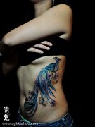 湖北随州纹身店:美女侧腰彩色凤凰文身图案图片大全